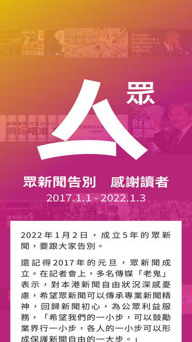 ç¾æ°è ç¾è from www.hkcnews.com Here is the complete list of the independent news media sites covered by toasty news this year i run a website toastynews (多事新聞) that aggregates independent news sites in hong kong. 眾新聞 (英語:hong kong citizen news)由香港10名資深傳媒工作者及新聞學者新聞工作者創辦,包括資深新聞工作者李月華,前《明報》總編輯劉進圖、前《明報》執行總編輯姜國元、前香港記者協會主席麥燕庭、前香港記者協會主席岑. View cnn world news today for international news and videos from europe, asia, africa, the middle east and the americas. This press release from chattogram has been broadcasting all kinds of news. This private company limited by shares has been operating for 4 years 10 days. The information of citizennews company limited include the date of incorporation, registered office address, active status, company type and corporate name history. Explore tweets of 眾新聞 citizen news @hkcnews_com on twitter. 認真做新聞,冇水喉、冇老闆,靠你哋撐。 independent journalism in hong kong.